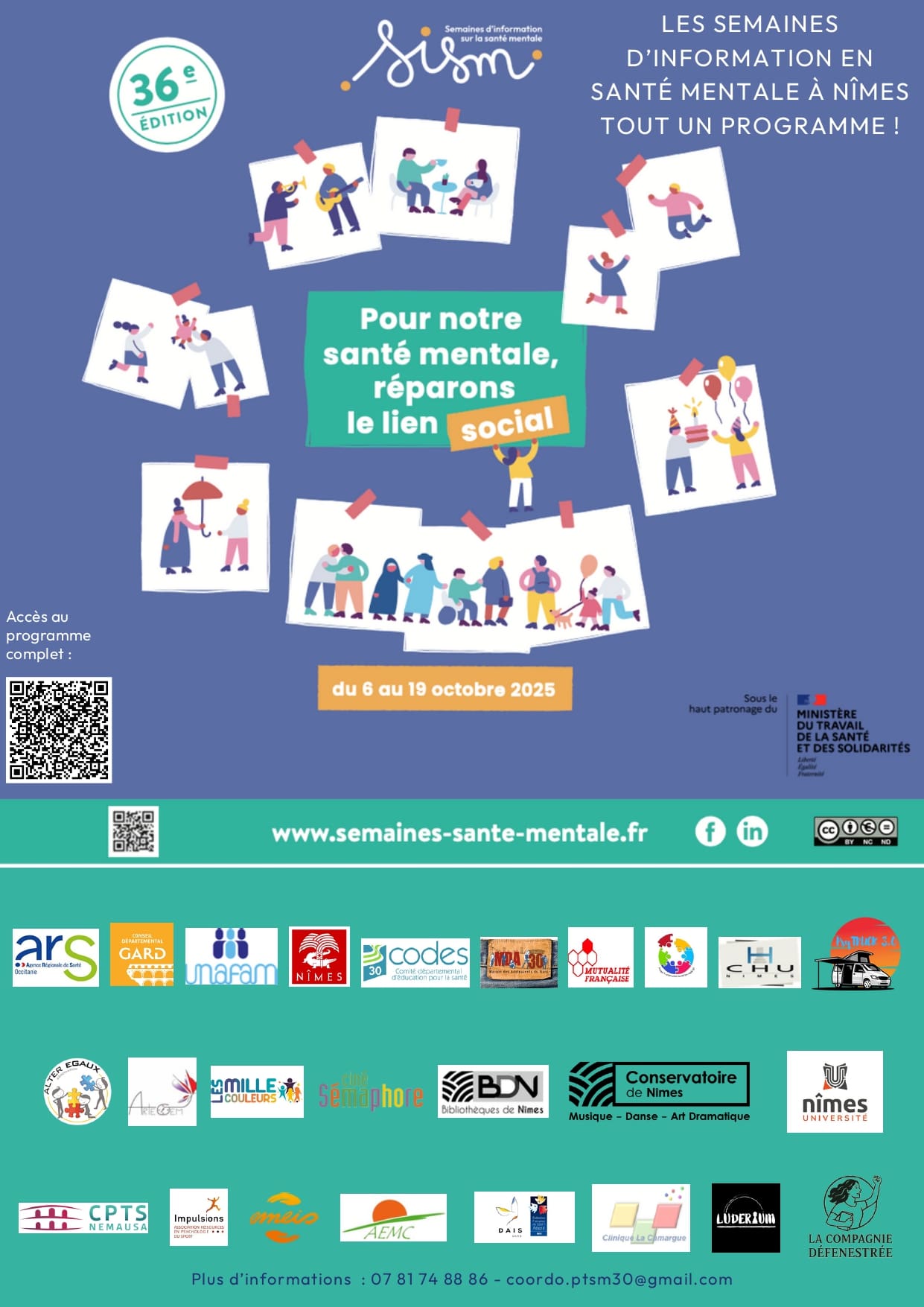 Cette édition est soutenue par le Ministère du Travail, de la Santé, des Solidarités et des Familles. La santé mentale concerne tous les champs de la vie quotidienne, nous sommes donc toutes et tous légitimes pour organiser ou participer à un événement pendant les SISM.
